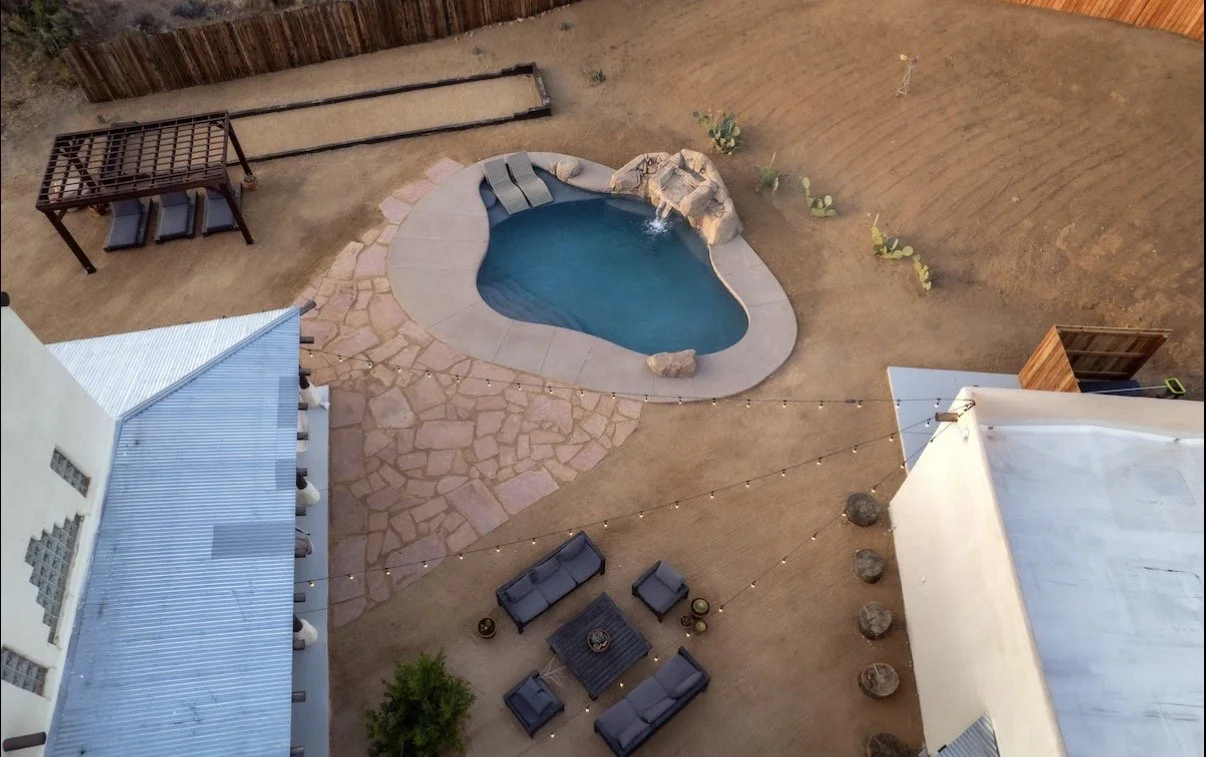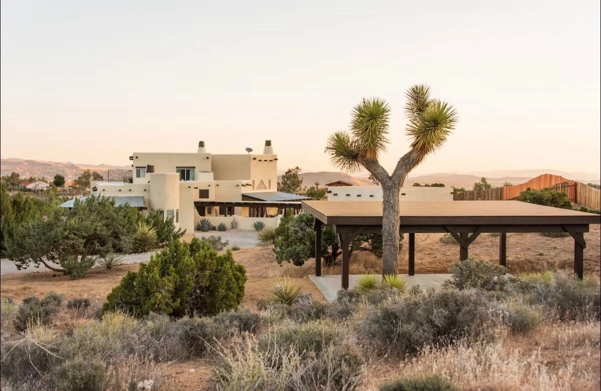 NESTLED IN A PEACEFUL, UPSCALE ENCLAVE AT THE EDGE OF JOSHUA TREE NATIONAL PARK, THIS SPANISH ADOBE–STYLE RETREAT BLENDS TIMELESS DESERT CHARM WITH MODERN LUXURY. SET ON 3.5 PRIVATE ACRES BENEATH EXPANSIVE SKIES, IT OFFERS A SACRED CONTAINER FOR REST, REFLECTION, AND TRANSFORMATION. INTENTIONAL DETAILS INCLUDE AN OUTDOOR YOGA PAVILION, WALKING MEDITATION LABYRINTH, LUXURY JACUZZI SPA, COLD PLUNGE TUBS, AND A SALTWATER POOL WITH A GROTTO WATERFALL. MULTIPLE OUTDOOR PATIOS, A ROOFTOP LOUNGE WITH FIRE PIT AND SUNSET VIEWS, AND A FULLY EQUIPPED OUTDOOR KITCHEN CREATE A SERENE, SOUL-NOURISHING SPACE DESIGNED TO HELP YOU SLOW DOWN AND RETURN HOME TO YOURSELF
