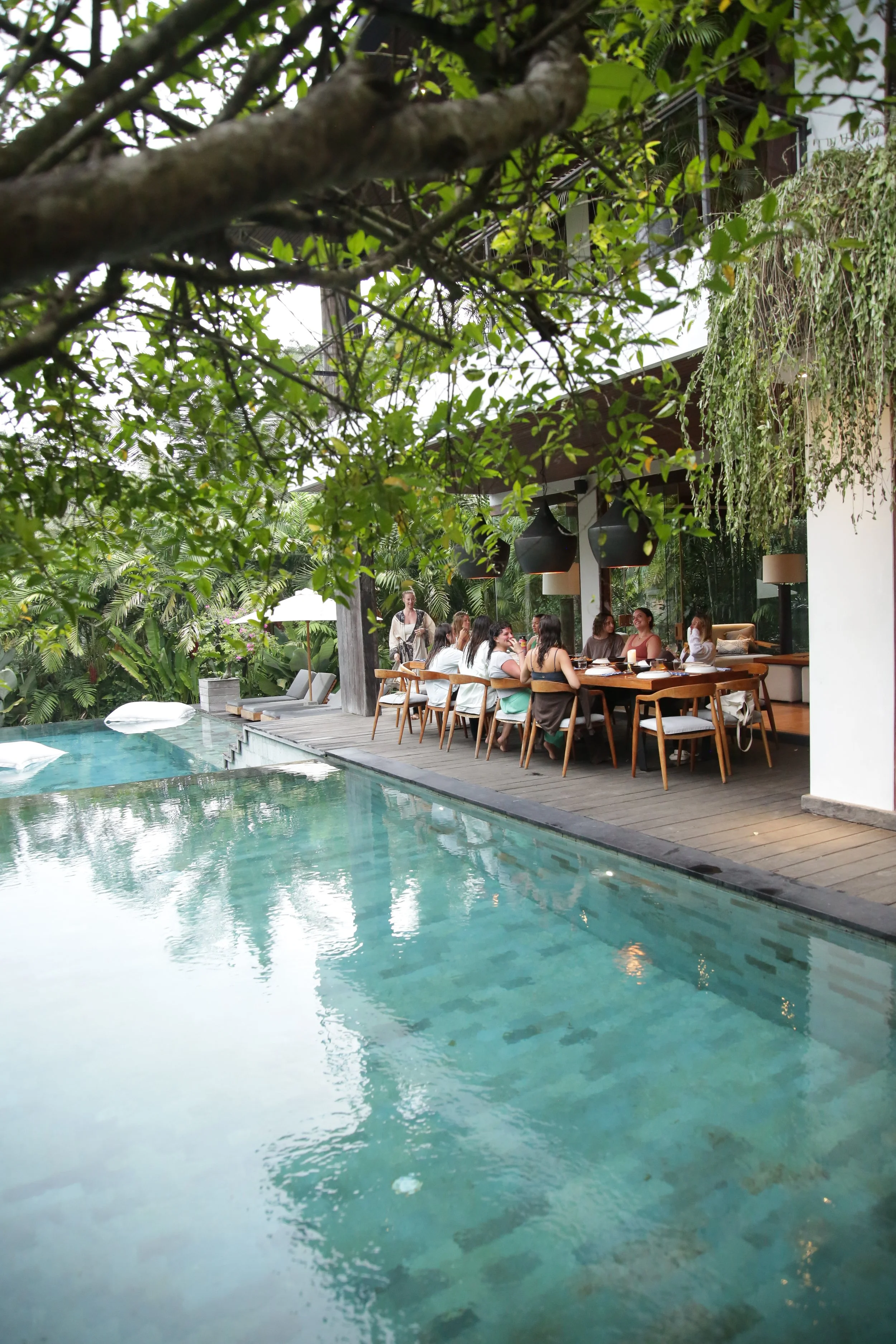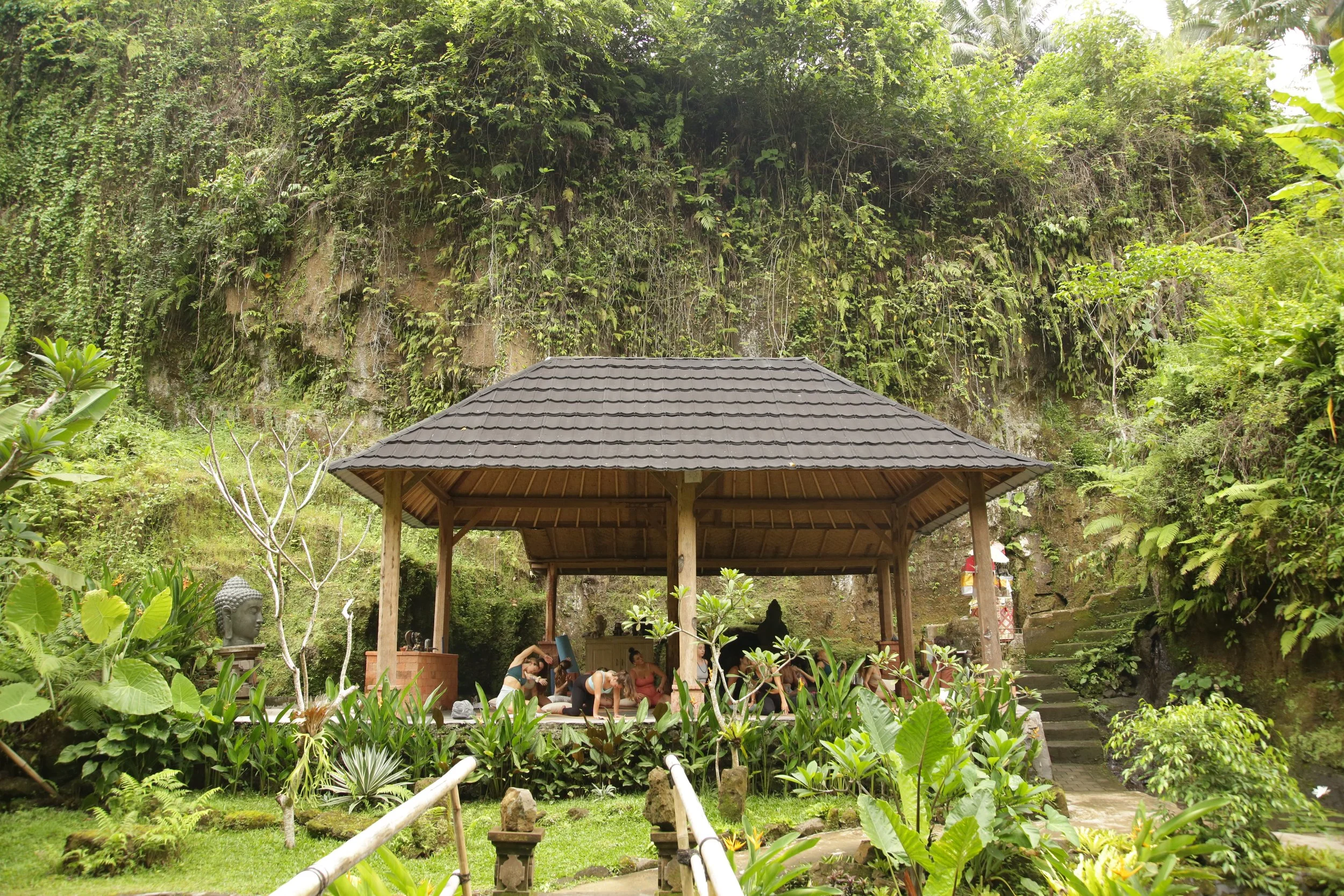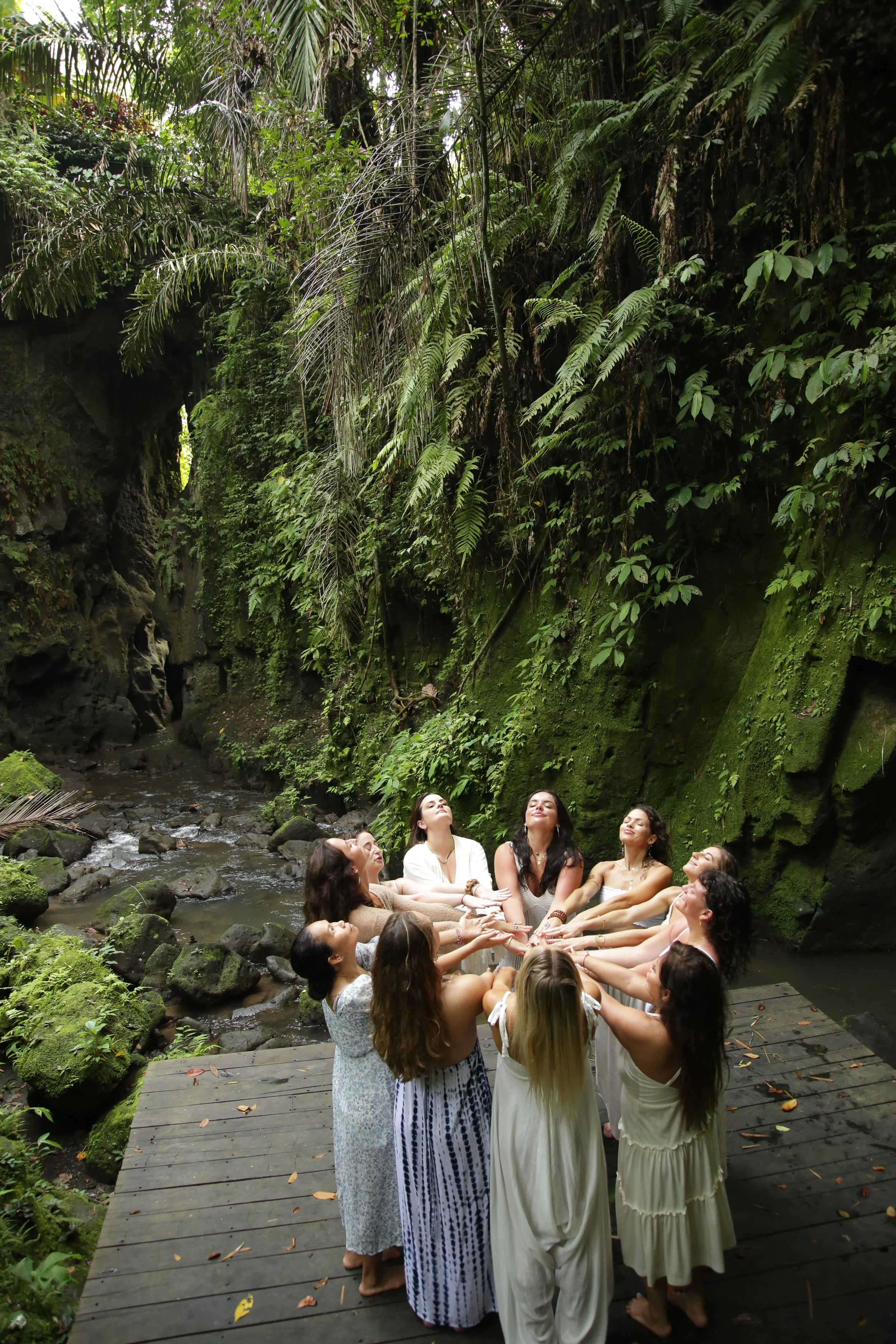 LOCATED IN GIANYAR, BALI, OUR SANCTUARY DWA CHANDRA IS A LIVING EMBODIMENT OF LUXURY AND ABUNDANCE. THE BALINESE OASIS FEATURES TWO STUNNING VILLAS BUILT ATOP A PRIVATE RIVER GORGE WITH NATURAL CAVE FORMATIONS, WATERFALLS, SURROUNDING RICE FIELDS, AND RICH JUNGLE. THE RETREAT CENTER HAS LIVING SPACES AND KITCHENS, A YOGA SHALA, A SPA AREA, TWO INFINITY POOLS, TWO FIRE PITS, AND A ROOFTOP WITH STAR-GAZING BEDS.