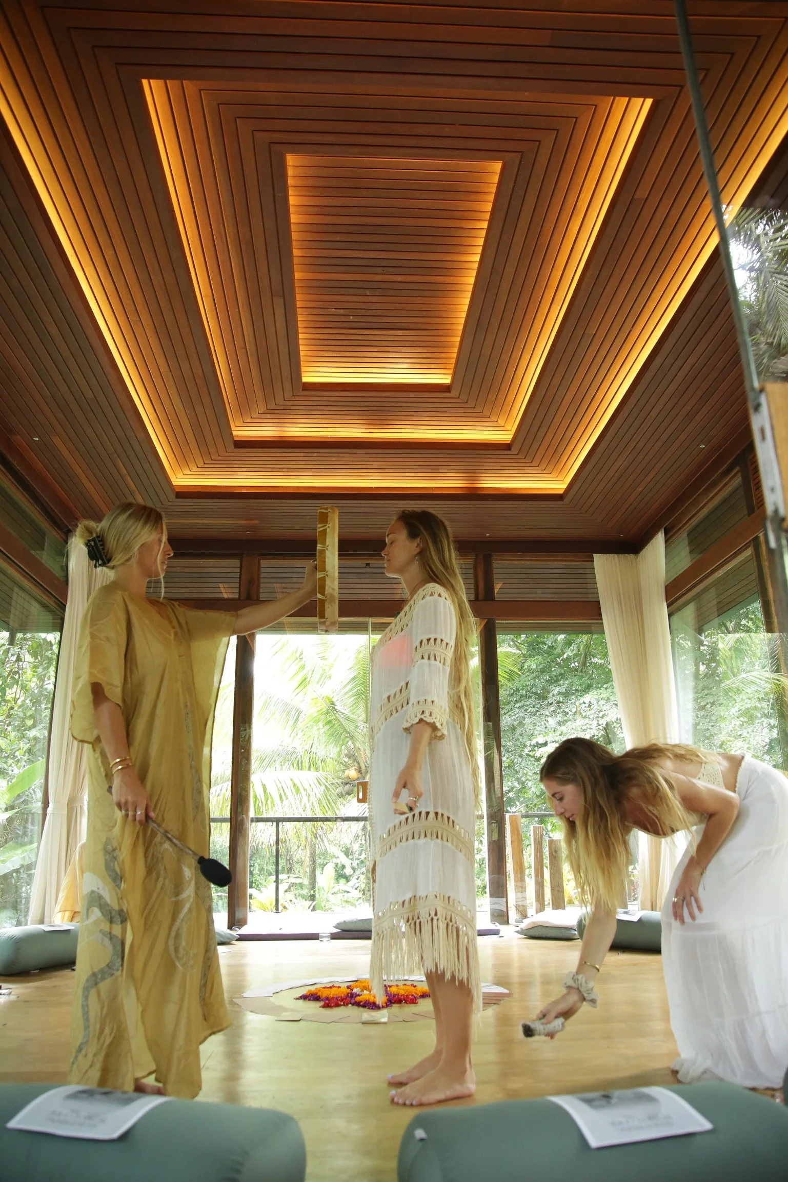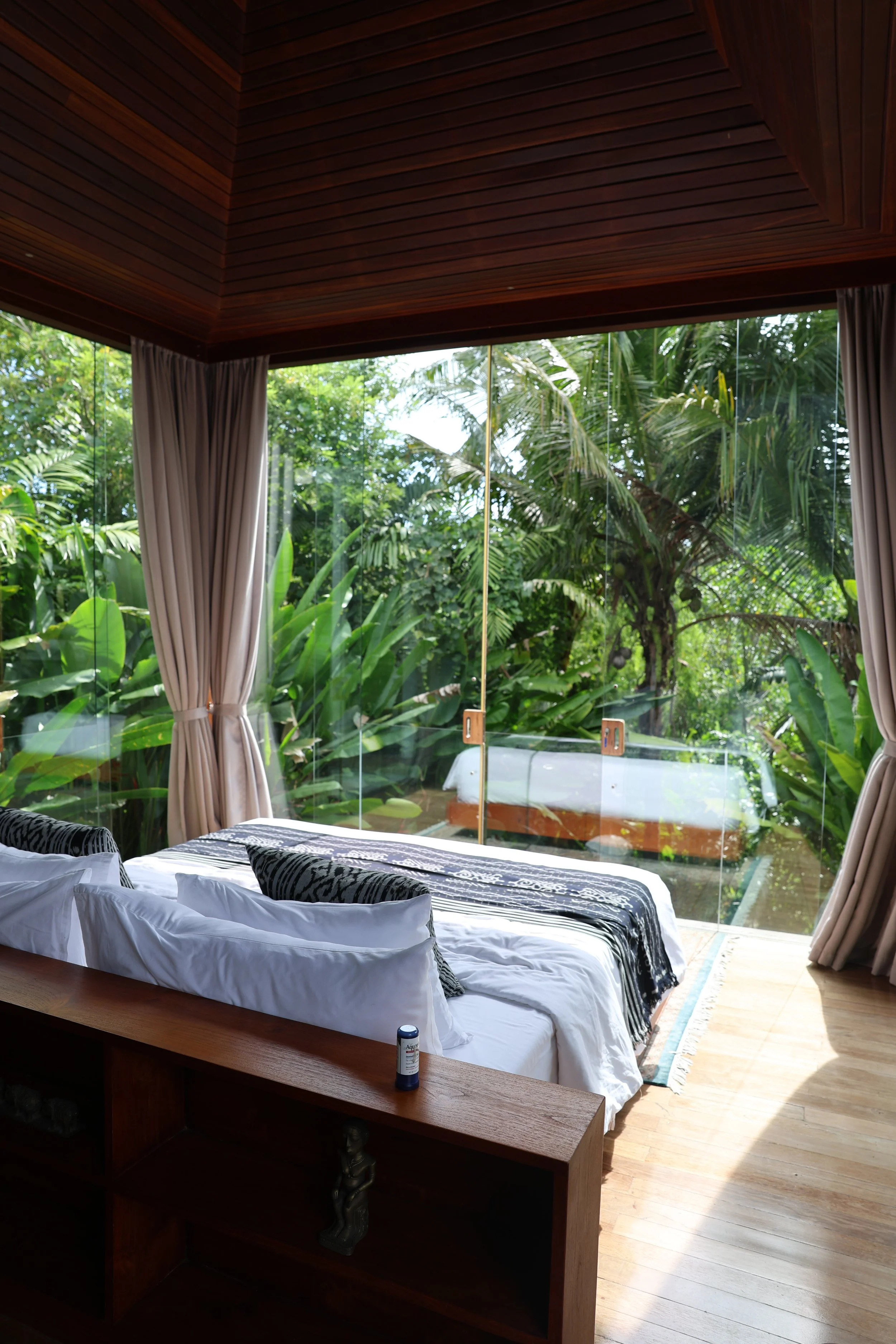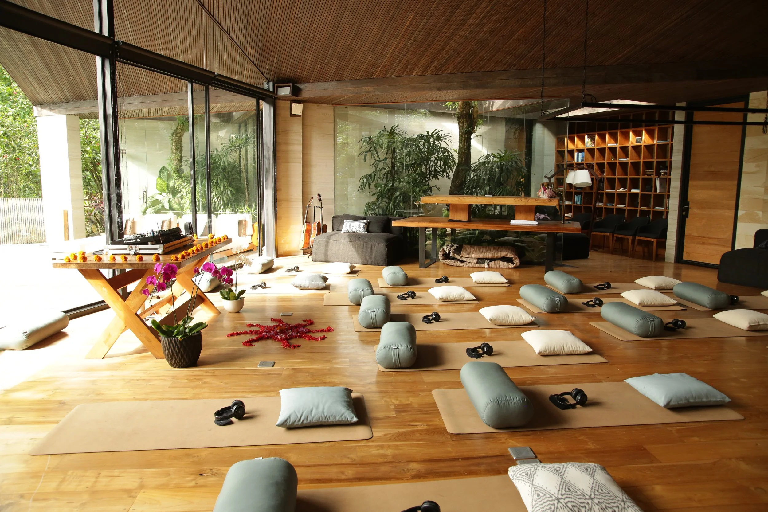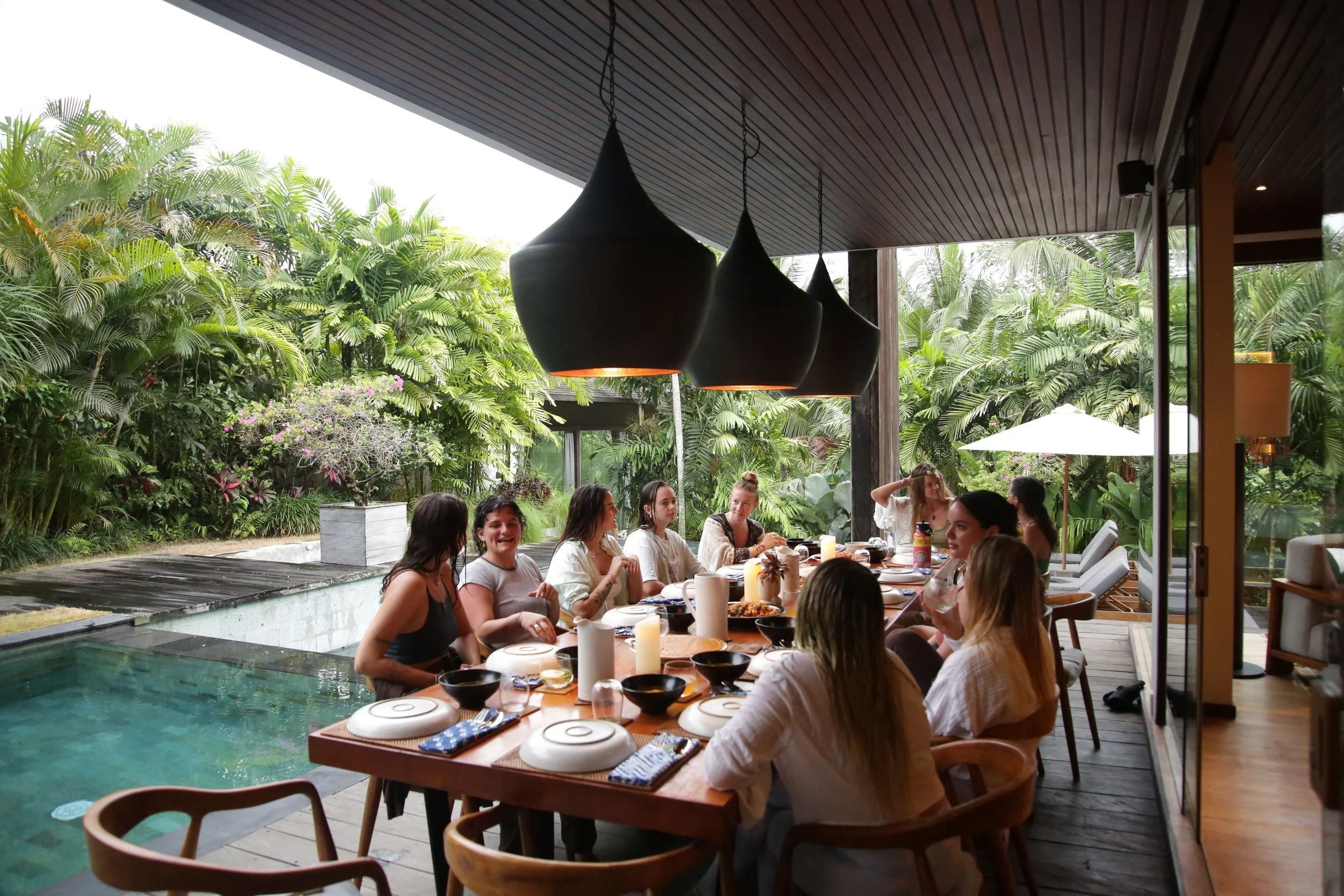 LOCATED IN GIANYAR, BALI, OUR SANCTUARY DWA CHANDRA IS A LIVING EMBODIMENT OF LUXURY AND ABUNDANCE. THE BALINESE OASIS FEATURES TWO STUNNING VILLAS BUILT ATOP A PRIVATE RIVER GORGE WITH NATURAL CAVE FORMATIONS, WATERFALLS, SURROUNDING RICE FIELDS, AND RICH JUNGLE. THE RETREAT CENTER HAS LIVING SPACES AND KITCHENS, A YOGA SHALA, A SPA AREA, TWO INFINITY POOLS, TWO FIRE PITS, AND A ROOFTOP WITH STAR-GAZING BEDS.