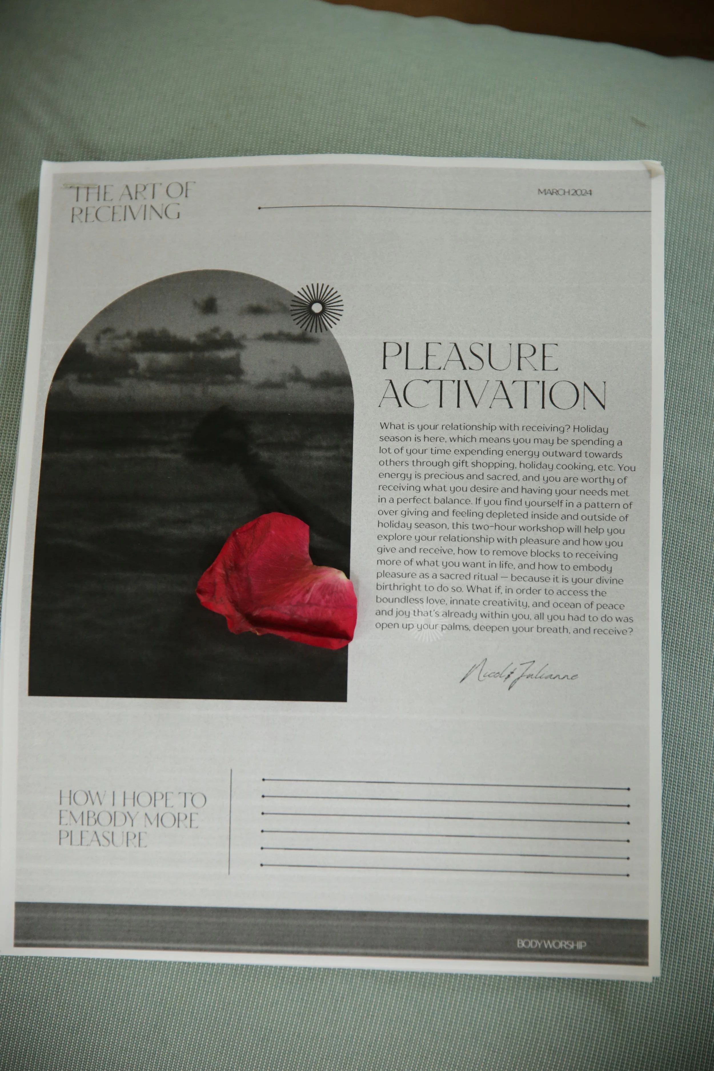 nicol is a writer, reiki master, international yoga and meditation guide, and a sacred voice for the feminine. after experiencing chronic illness in her early 20’s, nicol embarked on a journey of healing, exploring alternative modalities that aim to bring balance to the various layers of our human experience. what she unearthed in the process was a simple yet profound realization: we are the divine walking this earth, and it is our birthright to create the life of our dreams. through her healing reiki sessions, transformative yoga classes, empowering workshops, and soul-expanding retreats, nicol’s mission is to inspire others to live a heart-led life. you can stay connected on instagram @nicolnatale or at www.nicolnatale.com